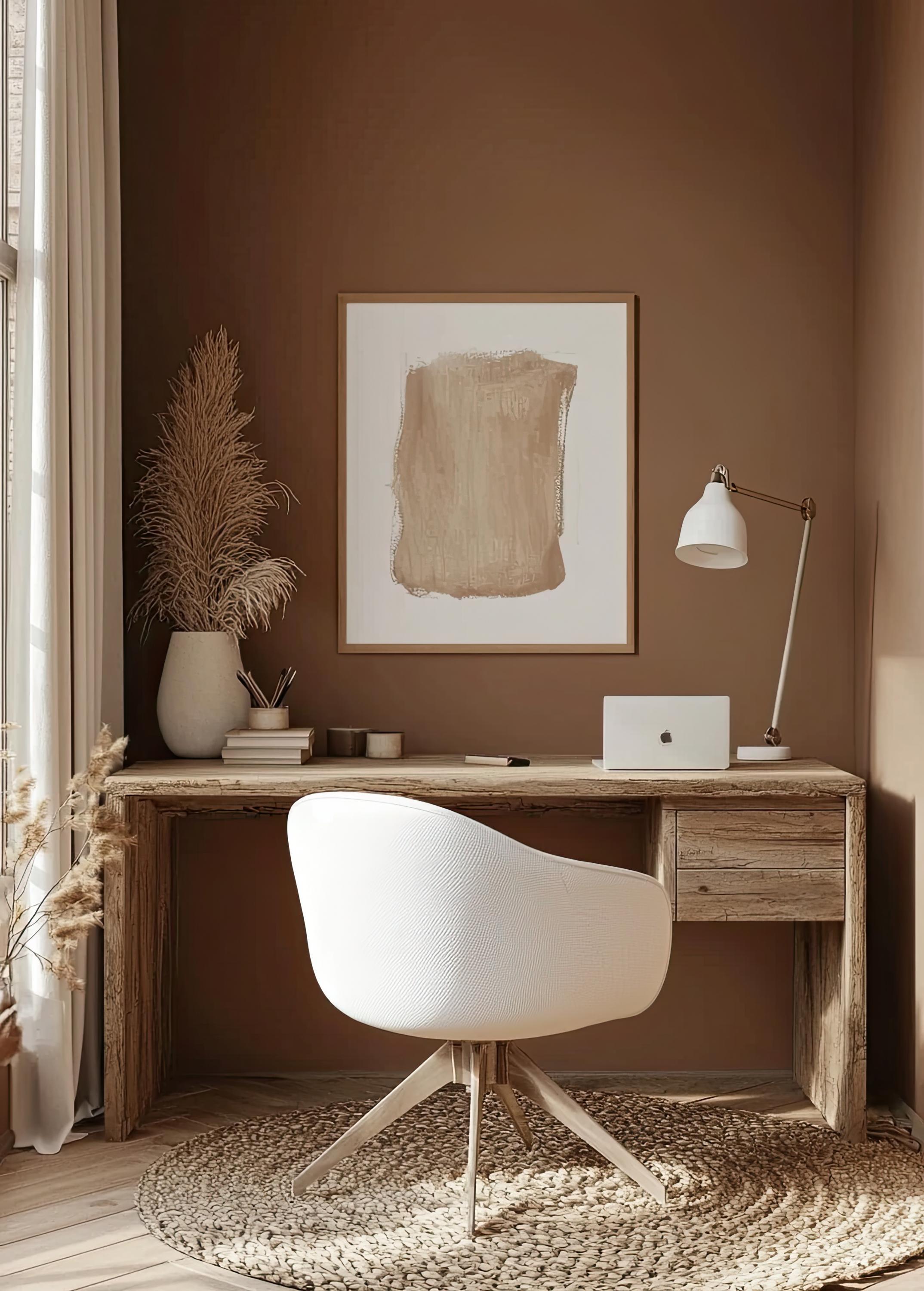 In een prettige thuiswerkplek draait het niet alleen om functionaliteit, maar ook om sfeer. Kies daarom voor zachte, neutrale tinten zoals beige, zand, lichtgrijs of warm wit. Deze kleuren zorgen voor rust, voorkomen afleiding en passen in bijna elk interieur. Houd je van wat meer contrast of energie? Dan kun je één accentkleur toevoegen in accessoires of een wand. Materialen zoals hout, linnen en vilt versterken het huiselijke gevoel. Combineer dat met een eenvoudige styling en je hebt een plek waar je niet alleen moet werken, maar ook wíl zijn.
