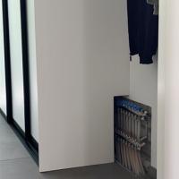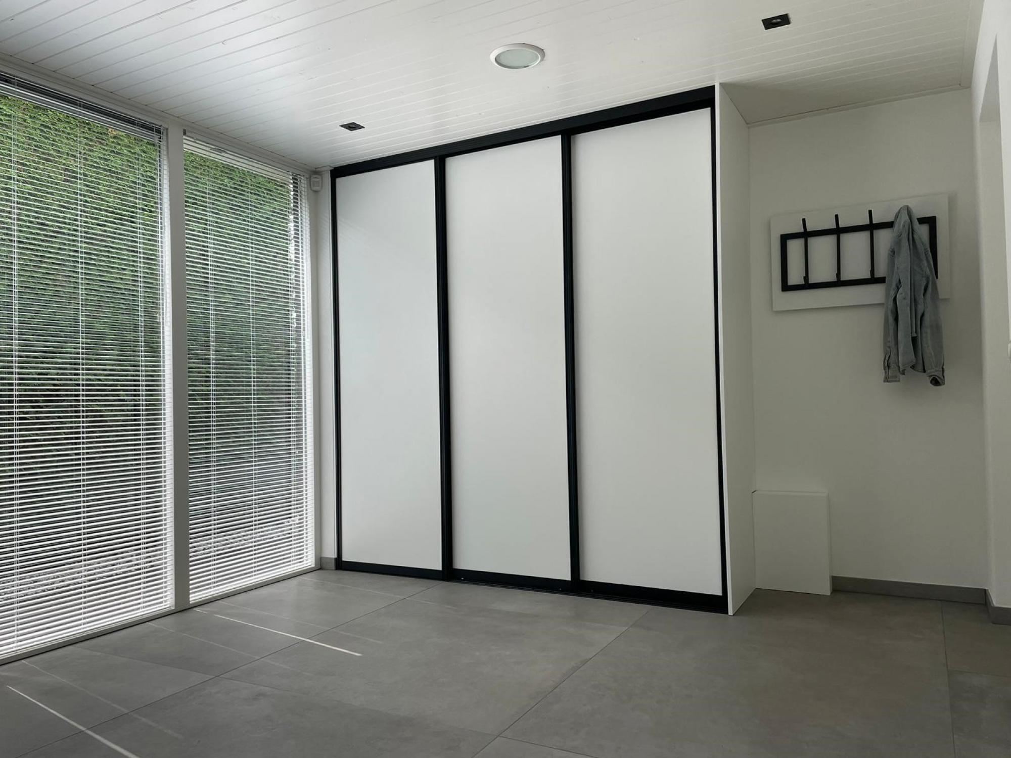 Deze stijlvolle schuifwand met zwarte 3-sporige rails en witte deuren biedt een moderne en strakke uitstraling. Het ontwerp is ideaal voor ruimtes waar één zijde vrijstaand is, waardoor het veelzijdig te plaatsen is. Het contrast tussen de witte deuren en zwarte rails geeft een eigentijdse touch aan je interieur. Deze schuifwand biedt niet alleen opbergruimte, maar ook een elegante oplossing om jouw ruimte georganiseerd en netjes te houden.
