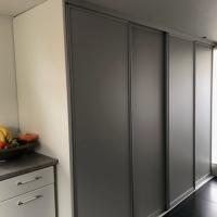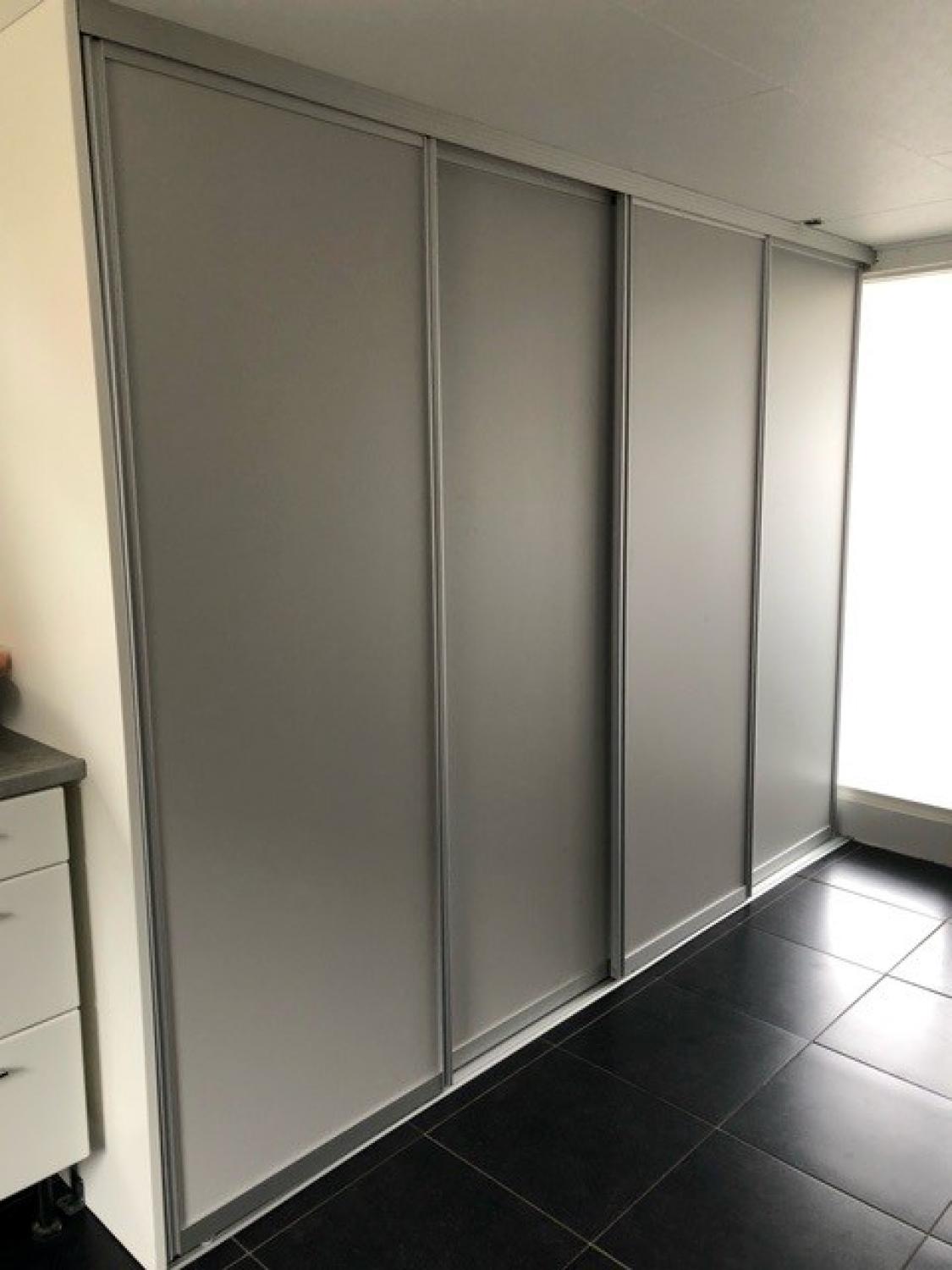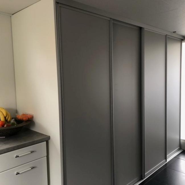 Schuifwandkast uni lichtgrijs met aluminium profiel