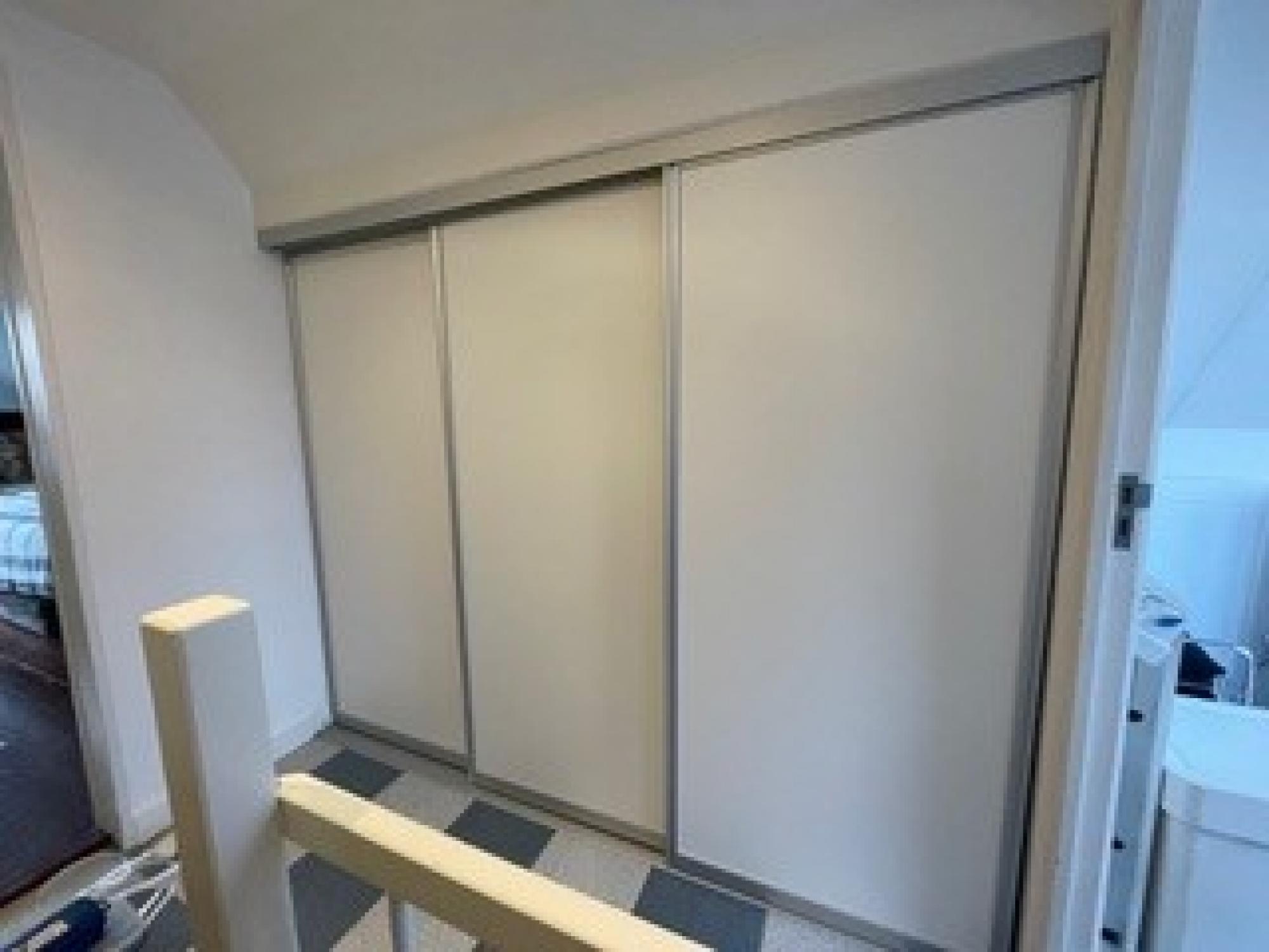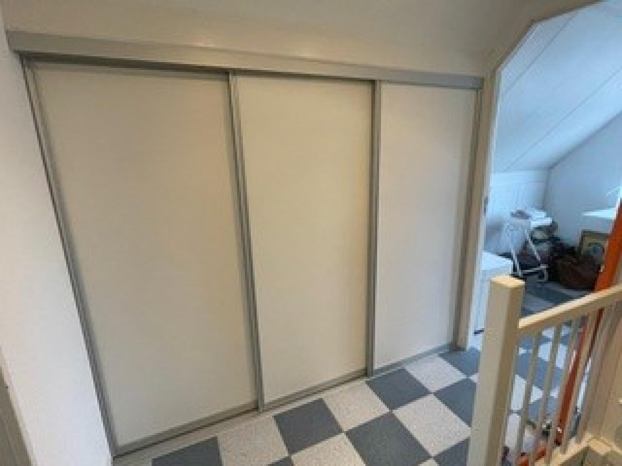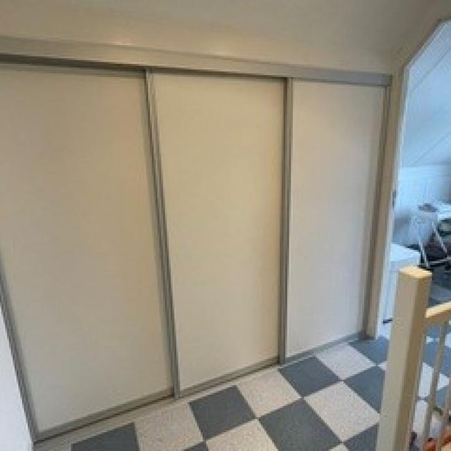 Deze schuifwandkast met drie deuren is afgewerkt in wit mat en voorzien van een geanodiseerd aluminium profiel en rails. De combinatie oogt fris en licht, met een moderne uitstraling. Met een hoogte van 1813 mm en een breedte van 2200 mm past deze kast moeiteloos in een kleinere of lagere ruimte.