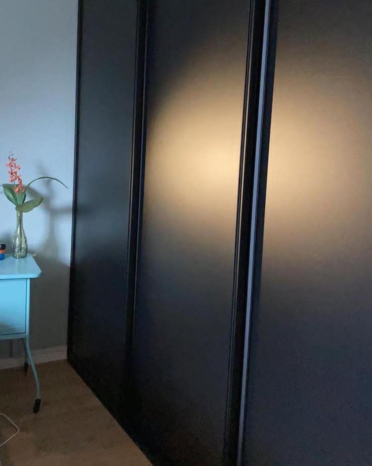 Deze zwarte 3-deurs schuifwand biedt een stijlvolle en praktische oplossing voor elke ruimte. Het strakke ontwerp met een diepzwarte afwerking voegt een moderne en verfijnde look toe aan je interieur. Of je nu kleding, accessoires of andere spullen wilt opbergen, deze schuifwand combineert functionaliteit met een luxe uitstraling. Een ideale keuze voor wie op zoek is naar een elegante en efficiënte opbergoplossing.